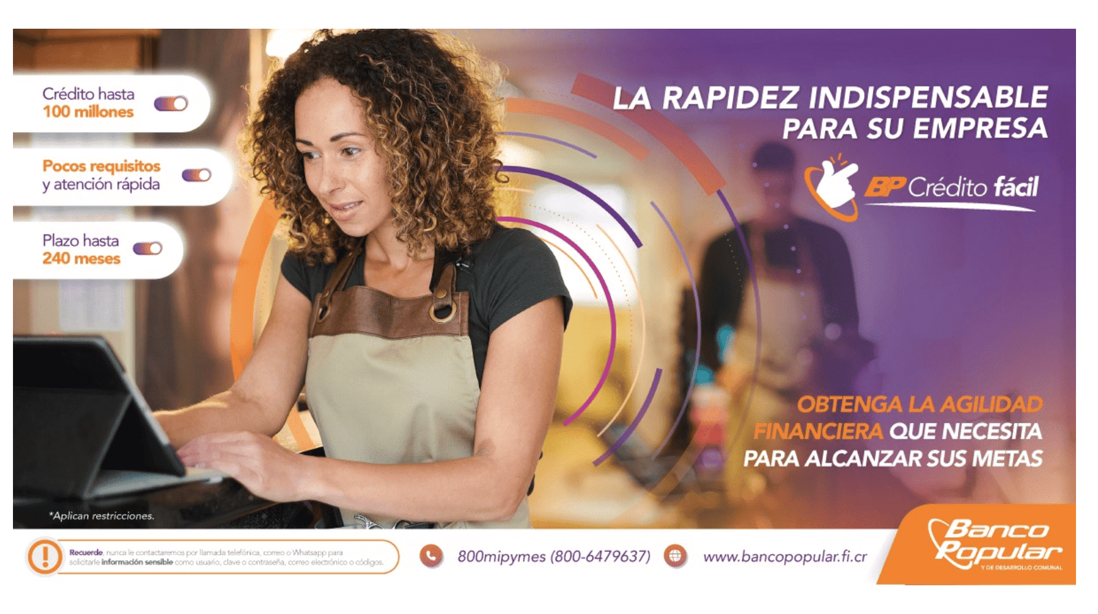 SAN JOSE, Costa Rica. En su compromiso social por impulsar la gestión empresarial del país, en especial de las MiPymes, el Banco Popular y de Desarrollo Comunal ha gestionado un nuevo programa de crédito que permite apoyar de manera más sencilla y ágil los proyectos productivos de estos negocios.