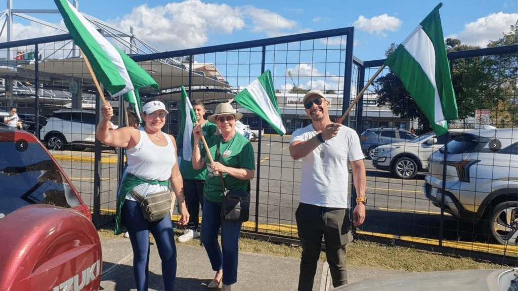 El cierre de campaña tuvo como punto central un gran piquete frente al Automercado de Moravia, donde militantes, simpatizantes y familias completas se congregaron en un ambiente de alegría, música, banderas y mensajes de apoyo, tiñendo la zona de verde y blanco.