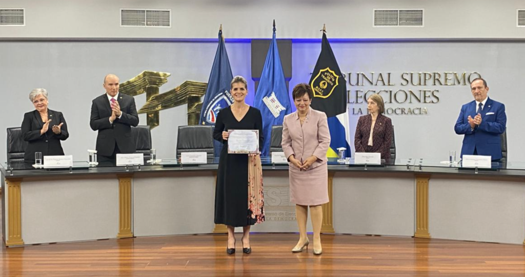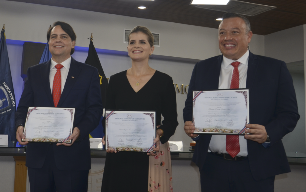 Junto a ella, también recibieron sus credenciales los vicepresidentes electos, Francisco Gamboa y Douglas Soto, quienes formarán parte del próximo gobierno que asumirá funciones el 8 de mayo de 2026.