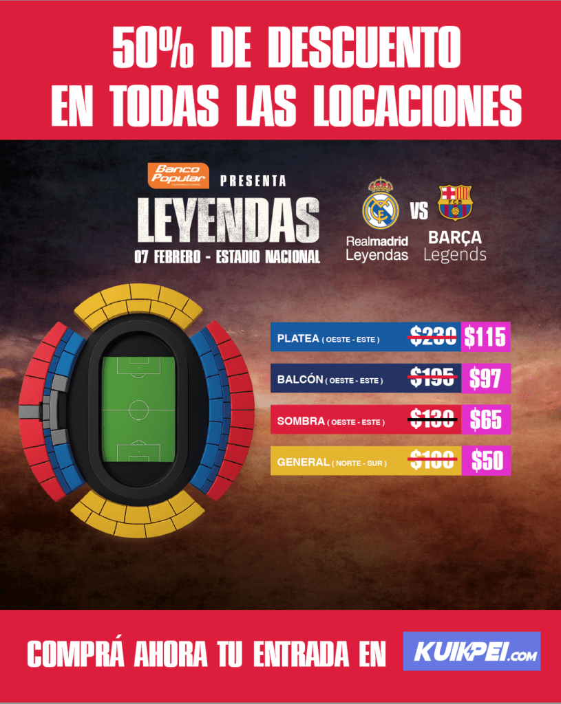 Real Madrid Leyendas y Barça Legends será transmitido por Teletica Canal 7 y Teletica Radio. Para más información sobre LEYENDAS, siga las redes sociales oficiales @leyendas.cr.